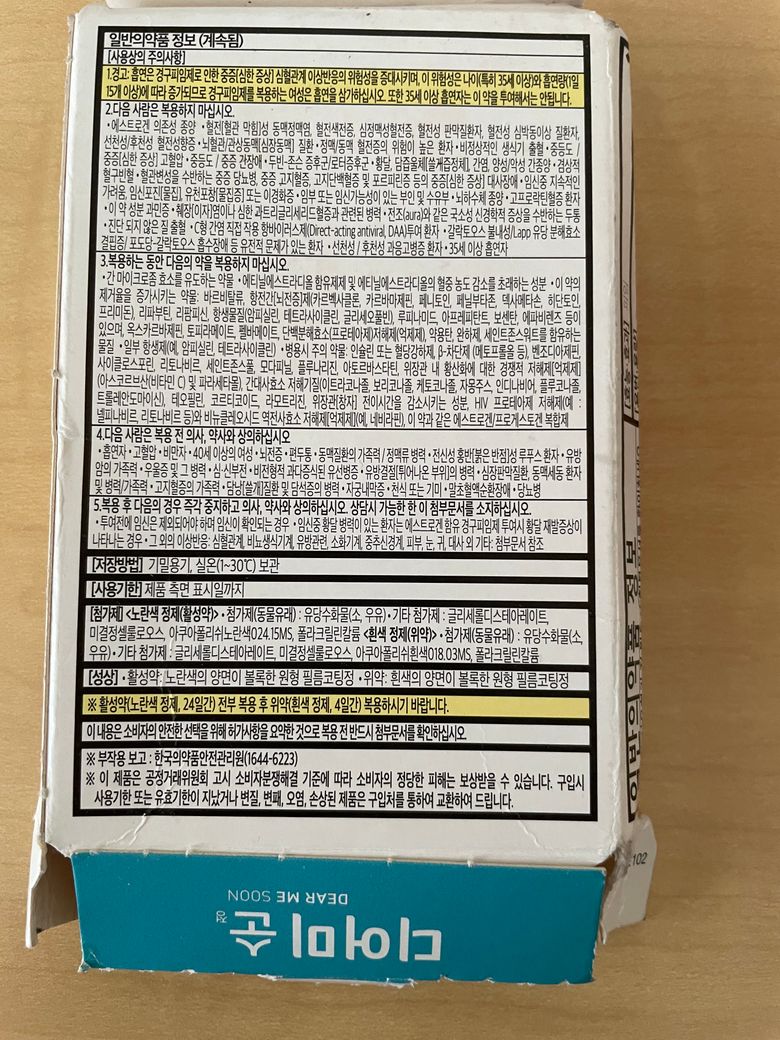 피임 목적으로 경구피임약 디어미순 복용 중에
