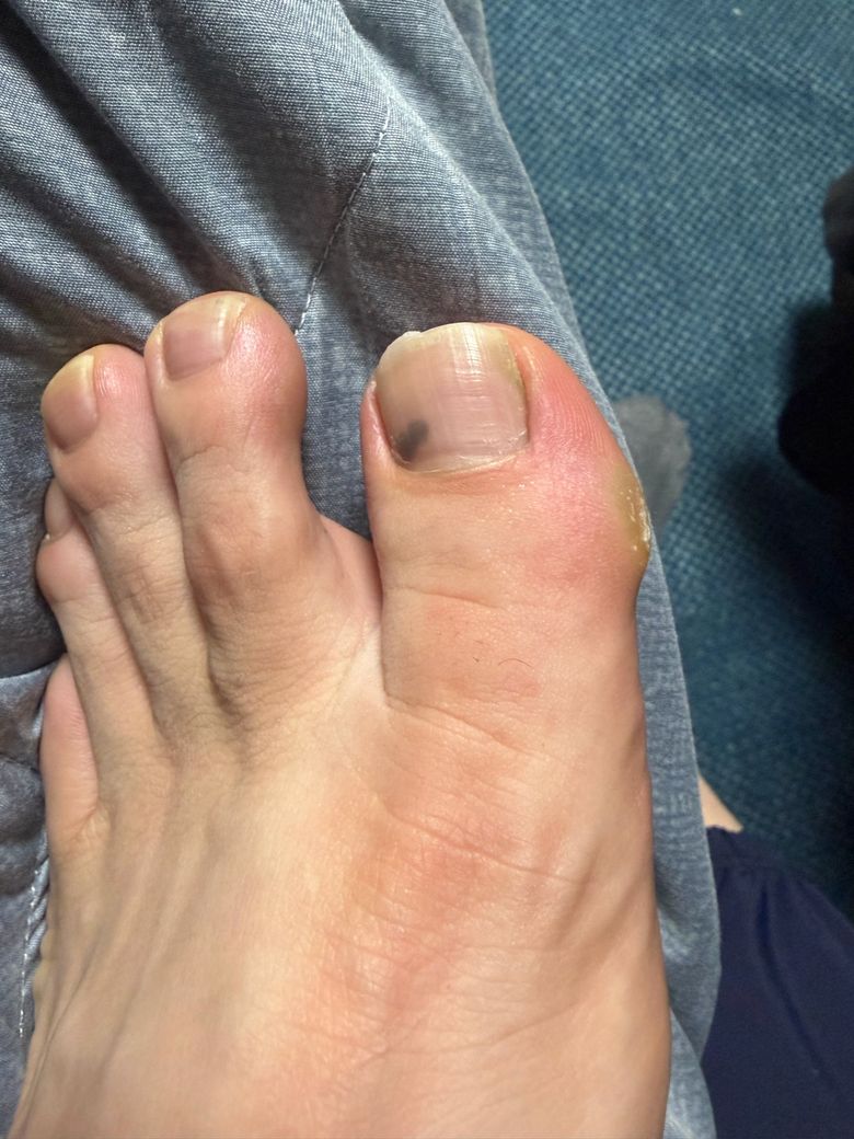 왼쪽 엄지발가락에 검은색이 생긴지 일주일째에요 아직 눈에 띄는 변화가 없고, 오른쪽 엄지발가락에도