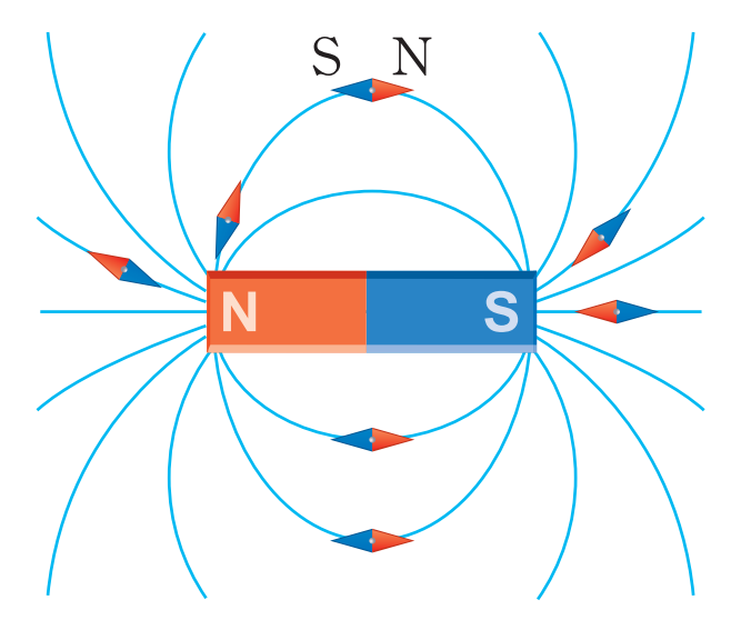 자석의 자기장은 N극에서 S극으로 향하는 방향을 가지고 있습니다. 이는 자석의 자기장이 자기력선을 따라 흐르기 때문입니다. 나침반은 자석의 자기장을 감지하여 자기장의 방향을 가리키는데, 이때 나침반의 자침은 자기장의 방향과 반대로 향하게 됩니다. 이는 자기장이 나침반의 자기장에 의해 반대로 작용하기 때문입니다. 따라서 나침반의 자침은 N극에서 S극으로 향하게 됩니다.
