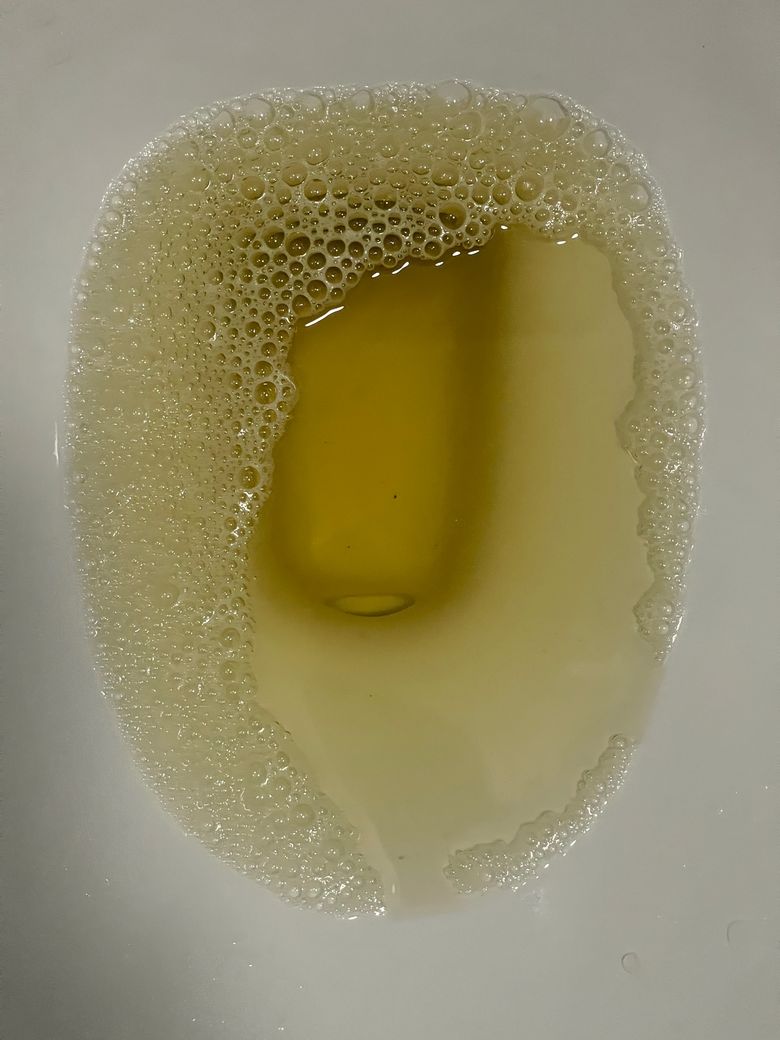 다만 질문처럼 물을 충분히 마신 후에도 거품이 지속된다면 단순 농축으로 설명되기 어려울 수 있습니다.