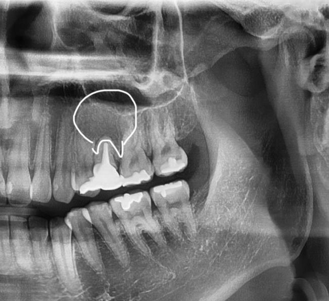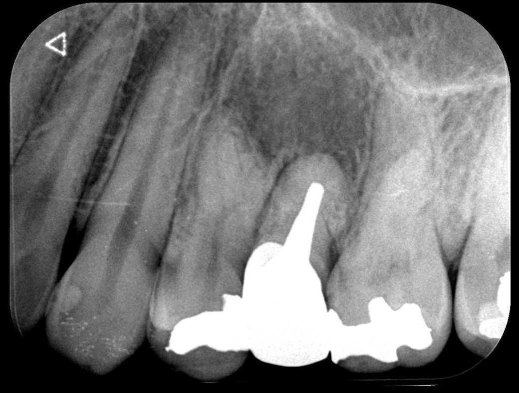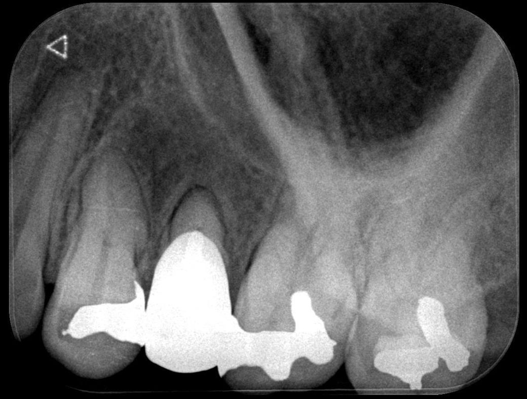 뿌리의 병수의 크기로 보면 최근에 생긴 것이 아니라 오랜 기간 동안 진행된 것으로 보입니다. 뿌리 끝에 병소가 너무 크다면 신경치료 등으로 해결이 되지 않을 수도 있기 때문에 큰 병원에서의 치료가 필요할 수 있습니다. 자세한 확인을 위해서 치과에서 진료를 받아보세요.