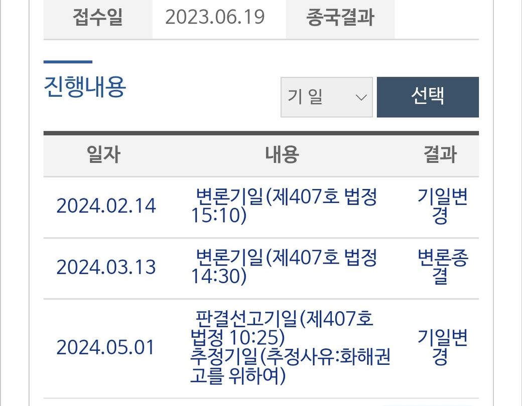 5/1 판결기일인 상태에서 오늘 갑자기 변경 기일 연락이 와서보니 사진처럼 추정기일 화해권고로 되어있네요