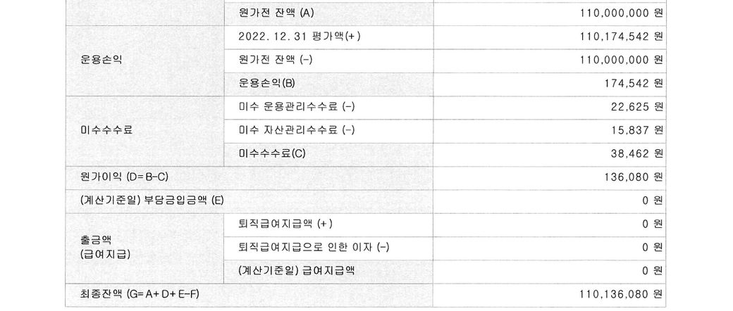 은행에서 DB형 퇴직연금의 이익계산서와 적립금 확인서 를 받았는데