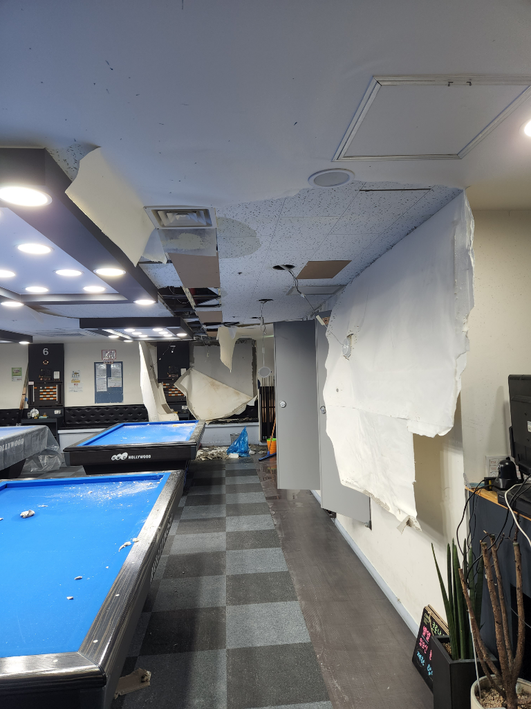 현재 저희만빼고 주변 다른건물들은 전부 정상영업을하고 있습니다. 저희는 천정이 내려 앉고 당구다이도 망가져 영업을할수가 없는 상황입니다.
