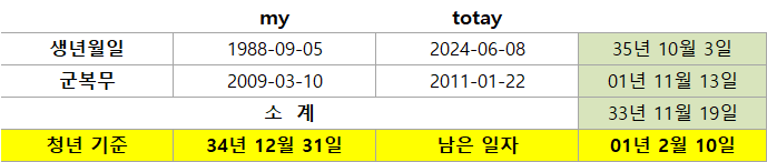군 복무기간 제외가 들어가 있어 기준이 햇갈립니다.