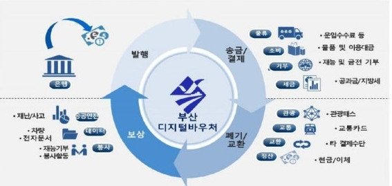 부산시에서 발행하는 디지털 바우처는 BNK부산은행에서 발행하는것으로 현금을 디지털바우처로 교환하거나 부산시의 복지 보조금을 디지털바우처로 교환 또는 재능기부를 하거나 블록체인사업(관광,공공안전,물류)에 참여하여 디지털바우처를 받을수 있습니다.