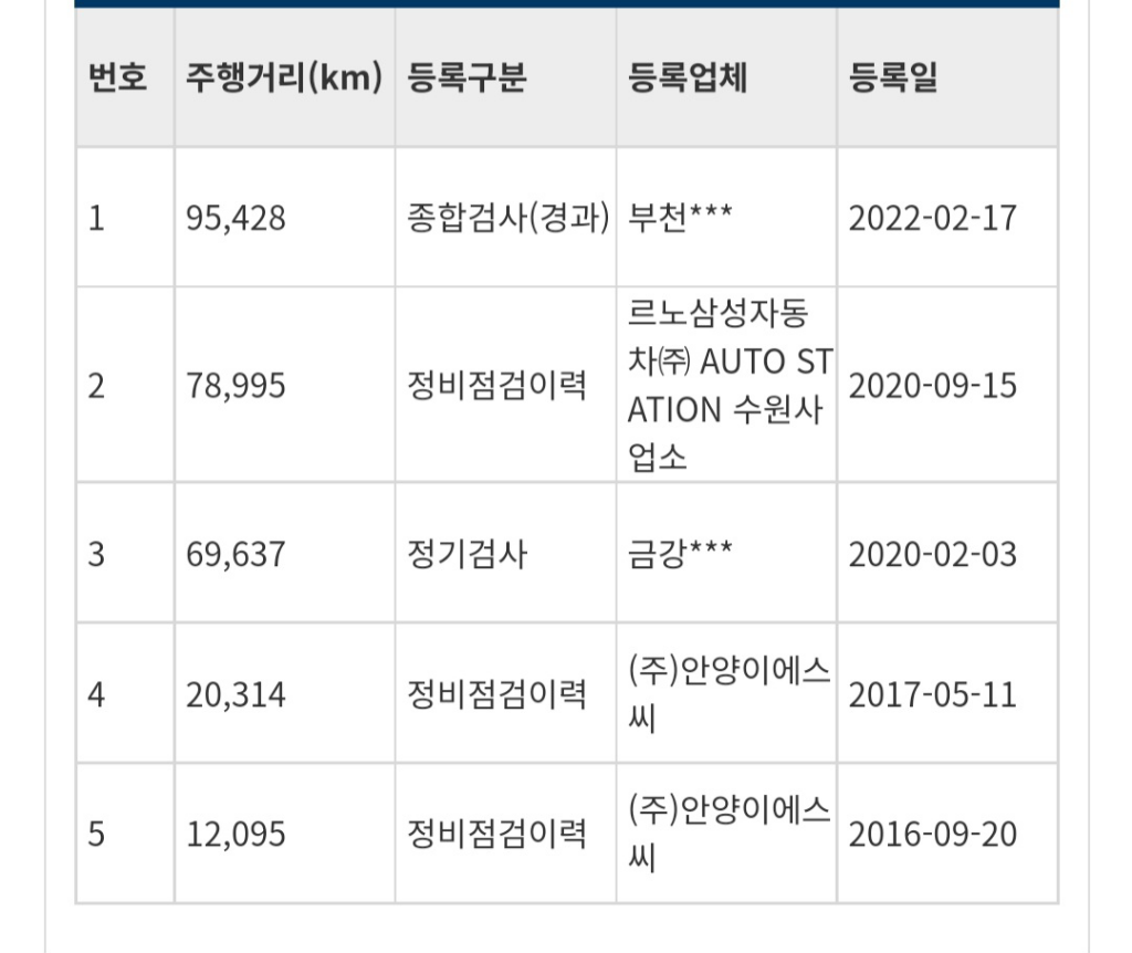 그리고 22년2월이 마지막 이력이면 구매하시고 경정비는 꼭 한번 보시고 타시는게 좋지 않을까 예상해봅니다.