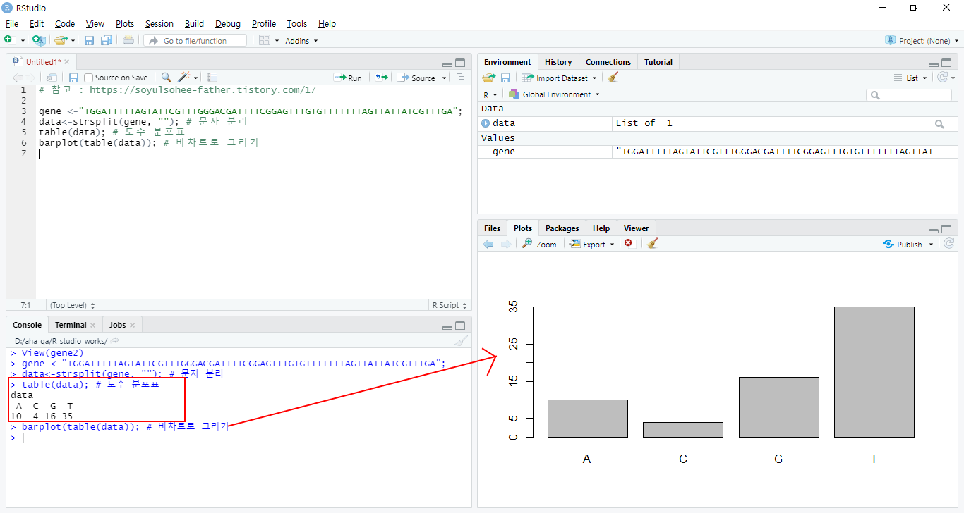 그냥 R스튜디오에서 도수 분포표 와 바차트 그리는 걸로 작성해봤습니다...