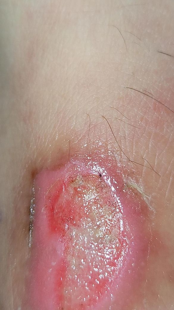 이전 답변과 같이 현재 상처는 잘 아물고 있는 상태로 소독과 습윤 드레싱을 잘 유지할 것을 권합니다.