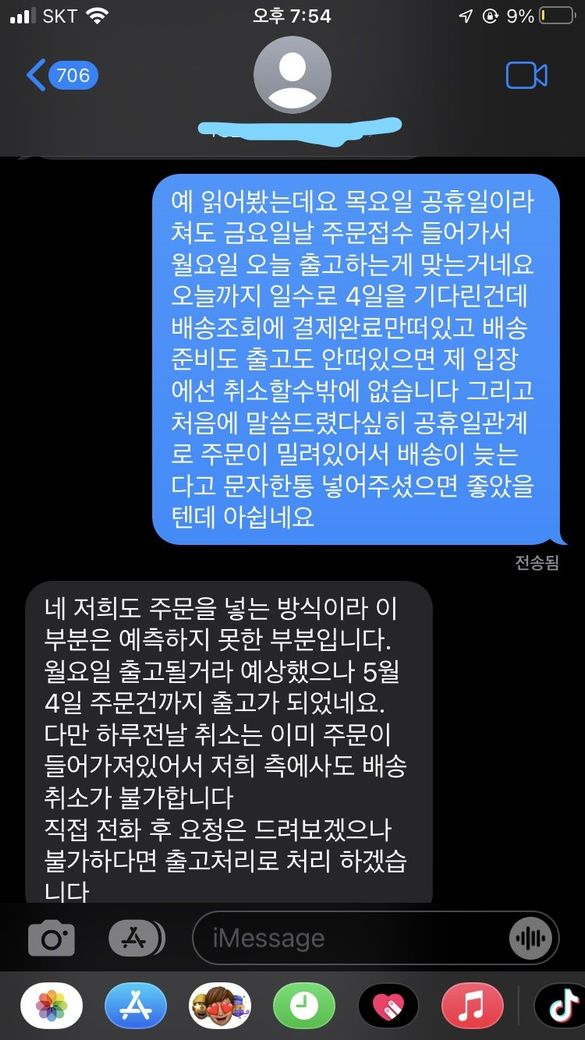 제 입장에선 4일동안 문자한통없고 출고중이나 배송준비중도 안떠있는상황에서