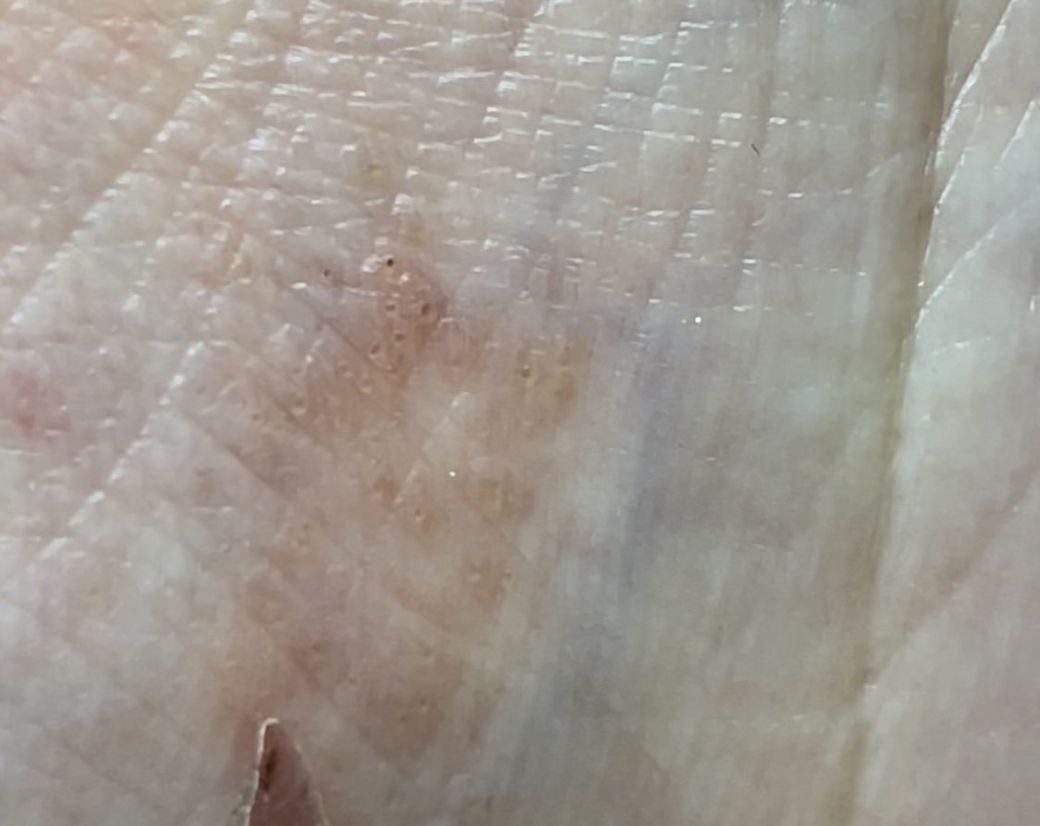 질문하신 내용에 대하여 아래와 같이 답변 드립니다.시간이 지나면서 물집등이 사라지면서 남은 흔적으로 보입니다. 크게 걱정하실 필요는 없어보입니다.