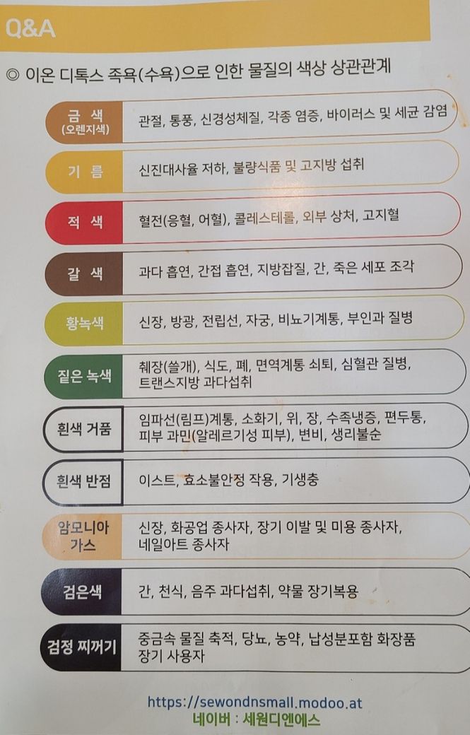 디톡스 족욕 카페에 가보니 디톡스 족욕을 하면 몸에 있는 독소가 빠지면서 몸 상태가 색으로 보인다고 말하더군요.