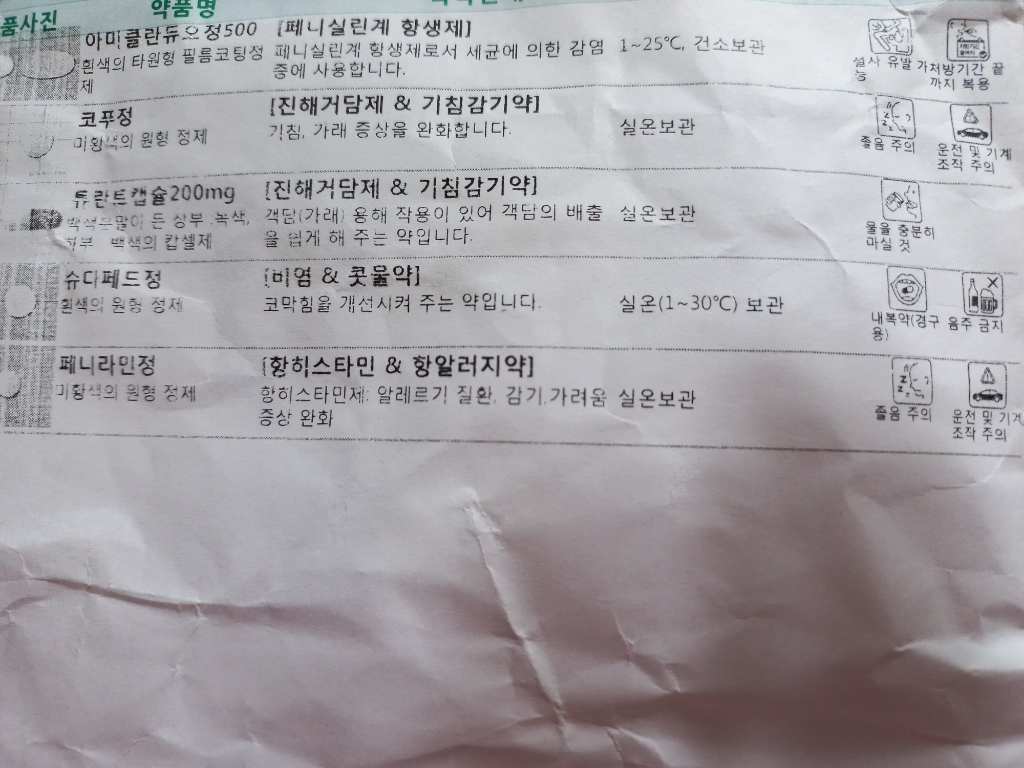 복용하시는 약물중에 페니라민정이 대표적인 항히스타민제로