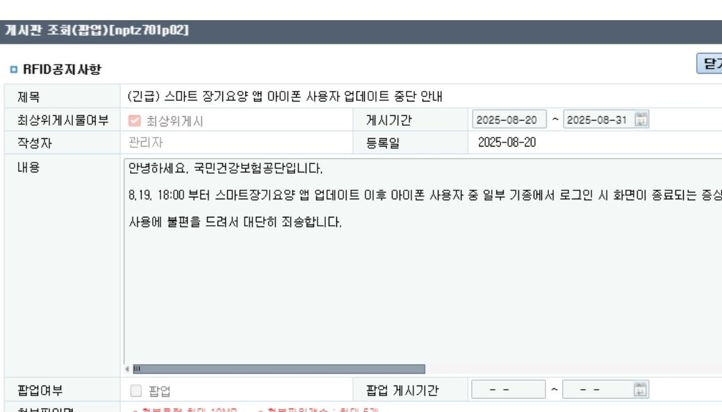 얼마전부터 건강보험앱 업데이트가 되면서 일부 사용자들에서 오류가 생겼습니다