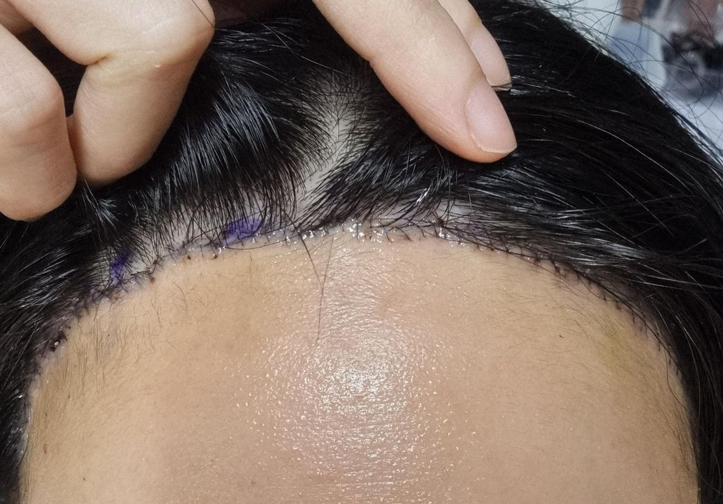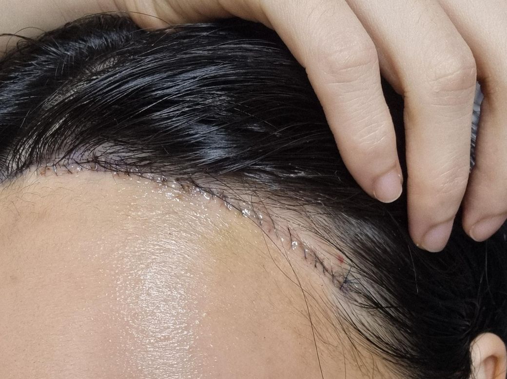 이틀차에 처음 봤는데 병원에서 잘 꿰매 주셔서 그런건지 분명 수술은 했는데 수술 안한 피부에다가