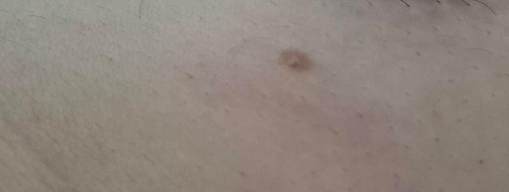 사진 소견을 통해서 미뤄 보았을 때에는 점의 모양이 찌그러져 있거나, 점의 경계가 불분명하지 않고, 점이 튀어나온 양상도 아니며 색깔 또한 검지 않기 때문에 흑색종을 의심해볼 수 있는 소견들이 크게 보이지 않습니다. 흑색종 피부암의 가능성은 낮아 보이며 단순한 색소 침착, 즉, 점일 가능성이 가장 높아 보입니다. 그렇지만 어디까지나 가능성을 보는 것일 뿐 피부의 외관적인 소견들만 가지고 완전하게 감별 및 배제할 수 없기 때문에 걱정되신다면 피부과에서 조직 검사를 받아보시는 것이 가장 안전한 방법입니다.