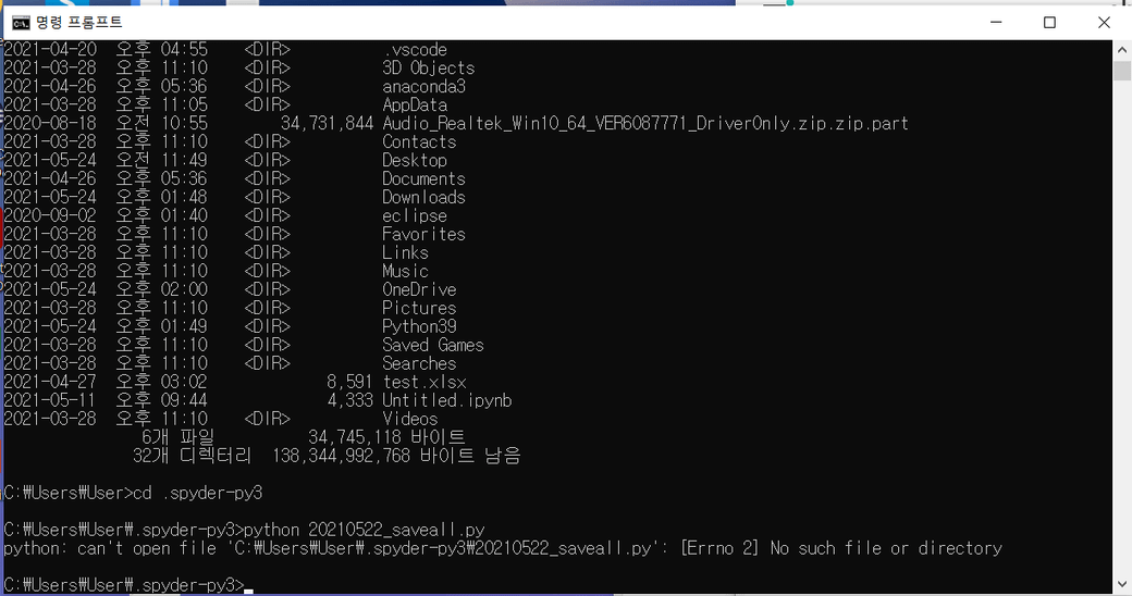 1. cmd 창에서 "20210522_saveall.py" 이 파일이 있는 경로로 이동해서 실행해 보시기 바랍니다.