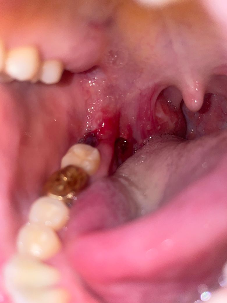 사랑니 뺀 자리 옆에 더 크게 구멍이나고 그 위에 피떡이 생긴 듯한 모습이 보이는데요 이거 뭘까요?