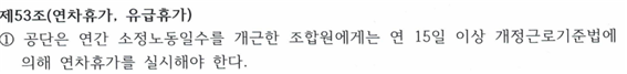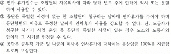 단체협약상 연차휴가와 관련된 조문은 다음과 같습니다.