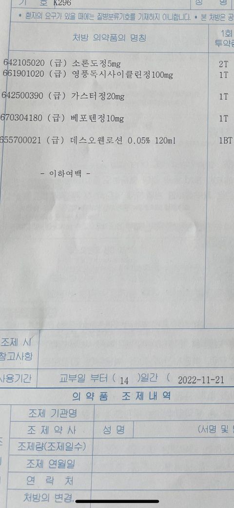 피부 알레르기가 생겨서 아래 약 복용 중입니다.