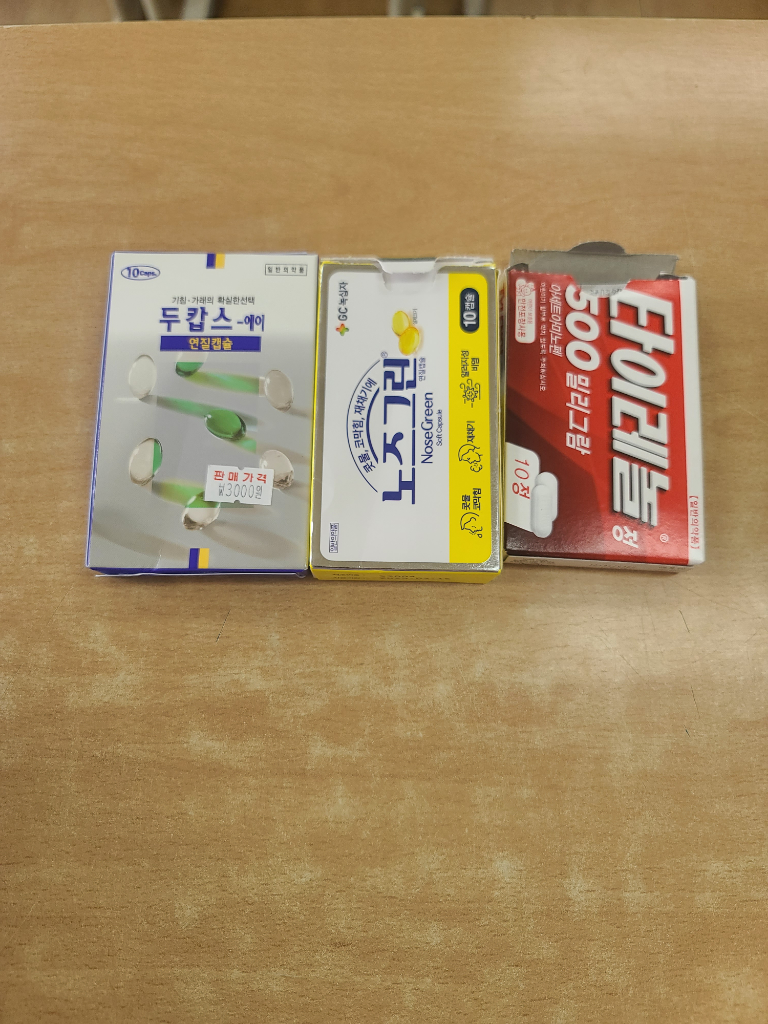 현재 문의주신 약중에 두캅스에이정과 노즈그린의 경우 중복되는 성분이 있기에 함께 복용시에 졸음을 유발할수 있어 운전이나 기계조작시에는 주의를 요하며 두가지중 한가지만 타이레놀과 함께 복용을 하길 권장드립니다.