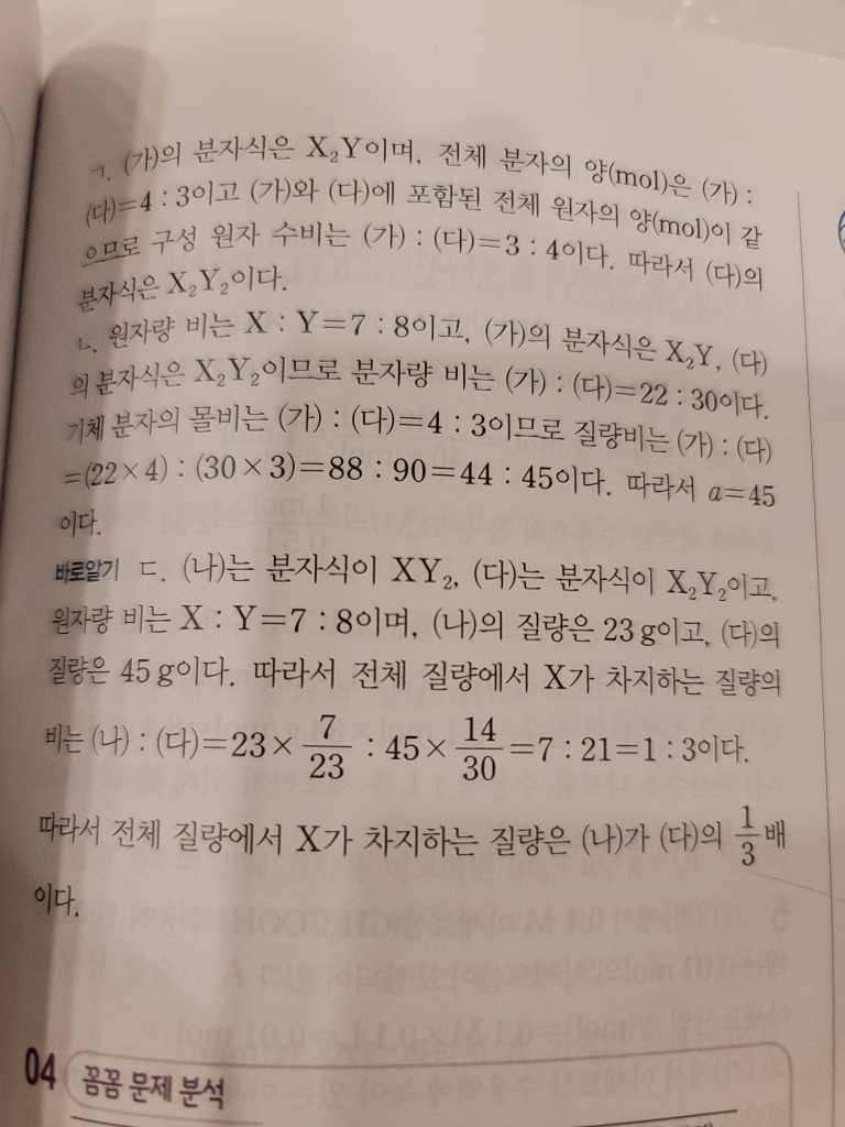 전체 분자의 양이 4:3인건 알겠는데 왜 가 다에 포함된 전체 원자의 양이 같은지 그리고 왜 3:4인지 모르겠어요 제발 알려주시면 감사드리겠습니다!