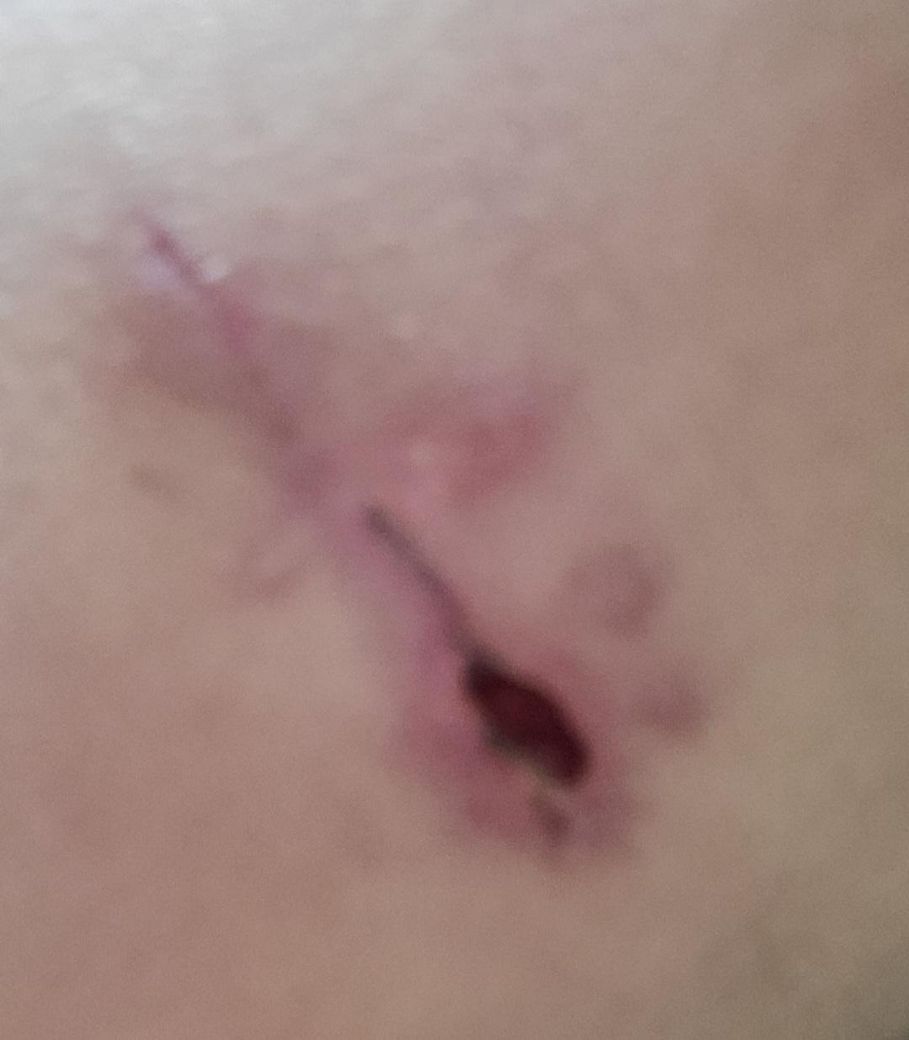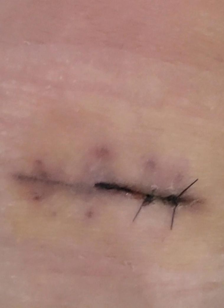 다시 꿰맷습니다..그후 일주일후 위쪽이 또 벌어졌습니다..4일전 샘께서는 다시 봉합안해도 나중에 다시 붙을꺼라며 기본 처치만하고 왔습니다..