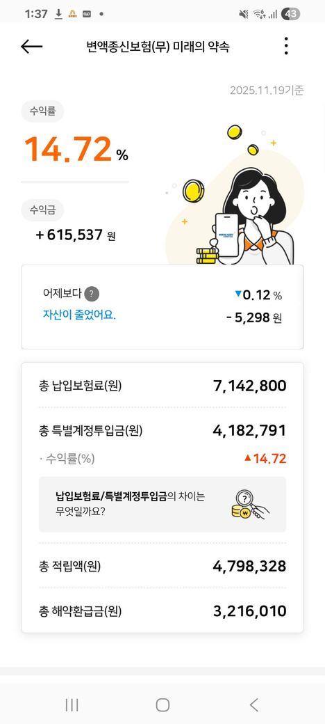 미래에셋 변액보험은 의무기간 채운다고 해약했을때 원금보장되는거 아니죠?