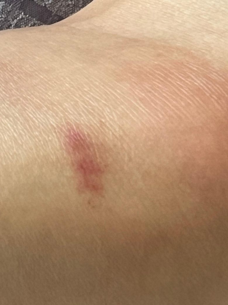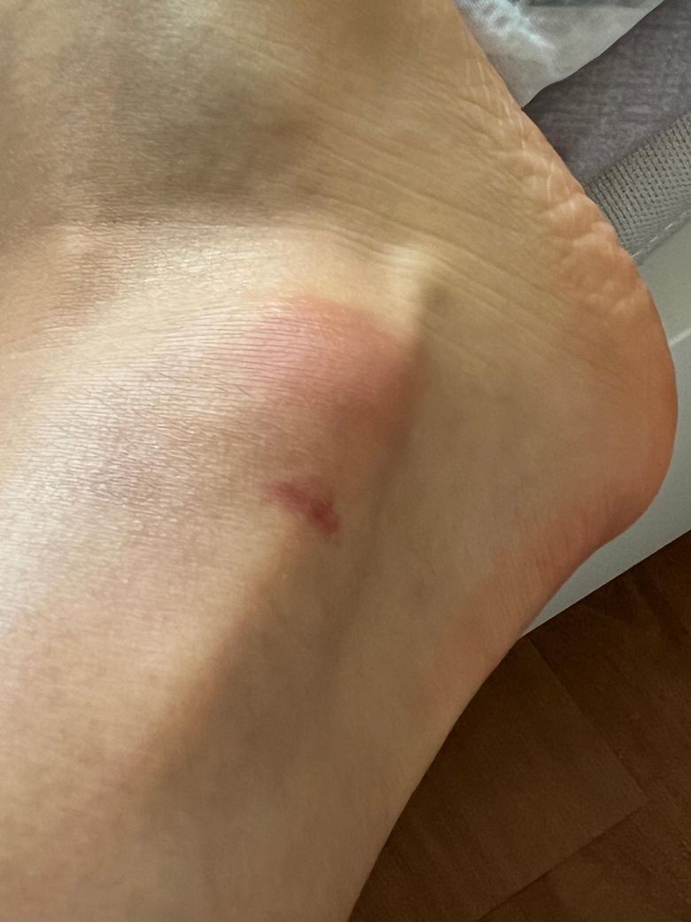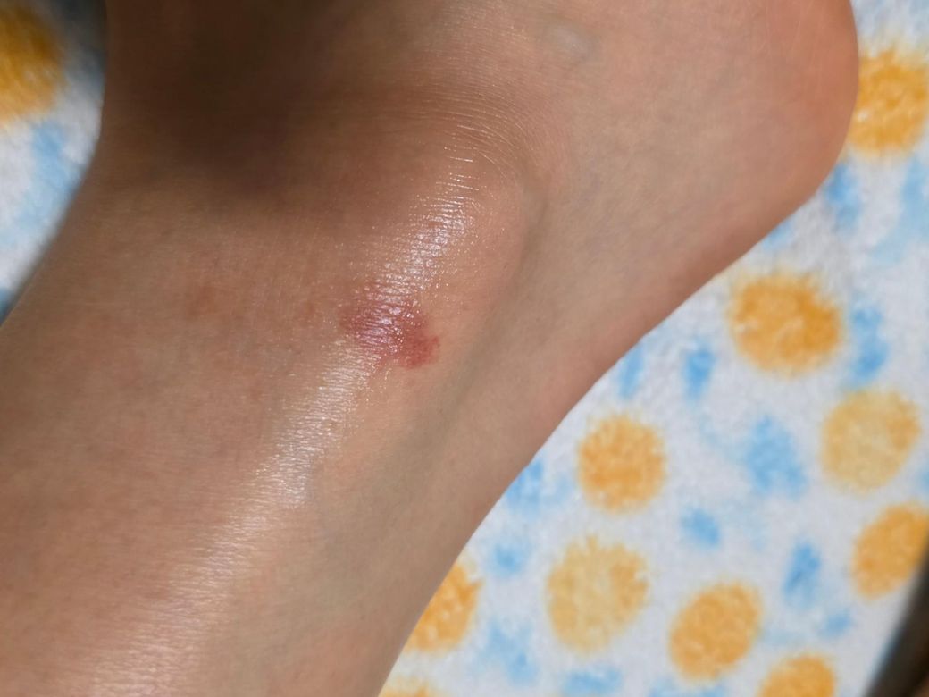 2주전에 발견했는데 아직 안없어져서요.. 오른쪽 복숭아뼈 위쪽입니다.
