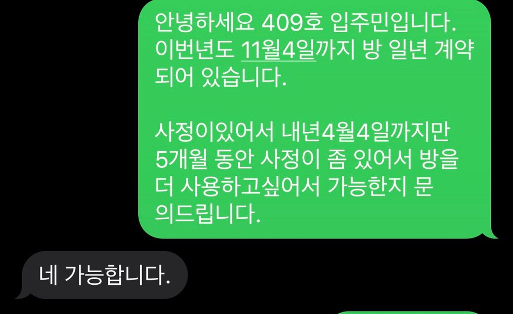 11월4일까지 1년만기이나 사진 올린거처럼 집주인분에게 5개월 연장말씀드렸습니다