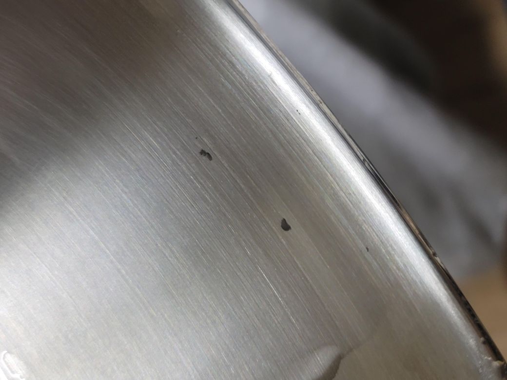 스테인레스 후라이펜은 코팅을 하지 않기 때문에 사용하는데는 문제는 없어 보입니다만, 보기가 싫다고 하면 반품 처리를 해보는것도 좋지 않을까 합니다