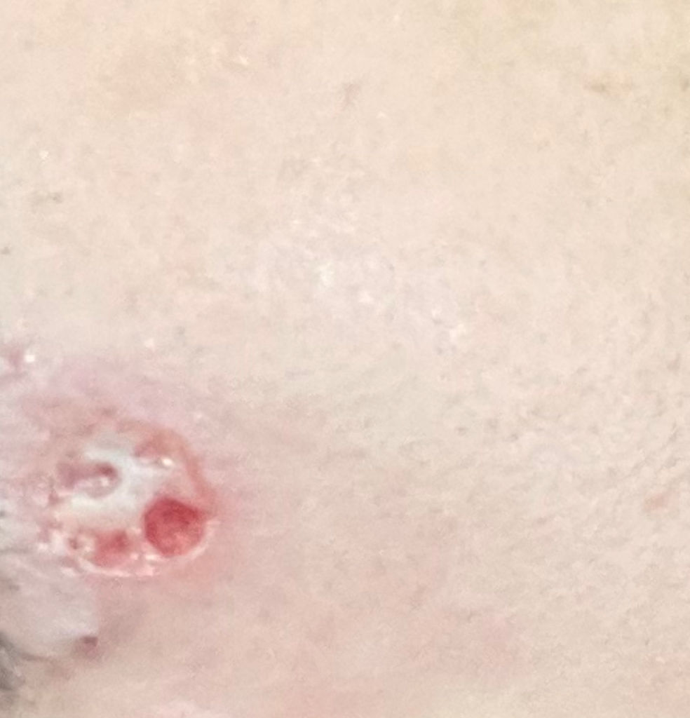 올리신 사진만으로 정확한 상태 평가가 가능하지는 않지만 상처가 어느 정도 회복 중인 과정에 있는 것 같습니다. 하지만 흉터가 남는 것은 불가피한 상황으로 보이며 어느 정도로 흉터가 남을지는 현재로서는 예측하기 어렵습니다. 수술이 필요해 보이지는 않습니다.