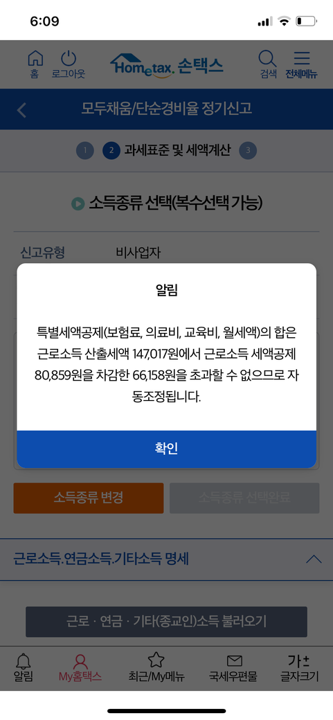 종합소득세 작성 중 오류 창이 뜨는데 무슨 의미 인가요 ?