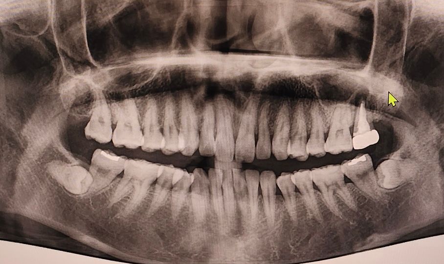 왼쪽위 젤 뒤에 치아끝에 염증이 많으신거 같습니다. 발치를 하고 3개월정도 기다리셧다가 잇몸뼈가 많이 안차면 그떄 상악동 거상술을 하셔야될것같습니다.