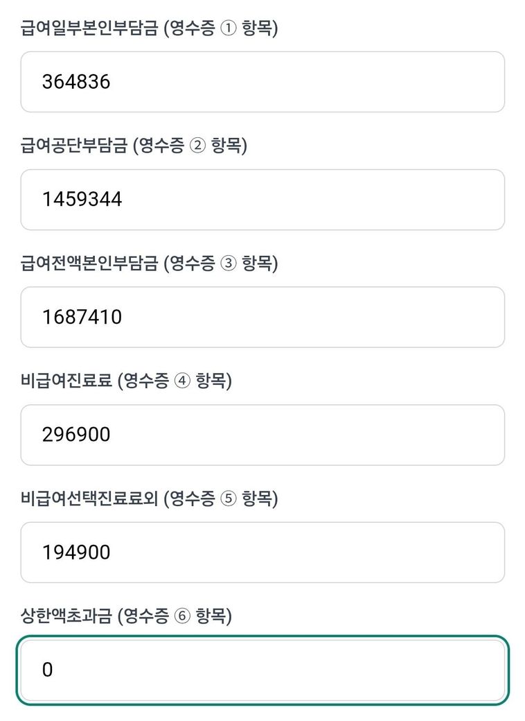 비급여 선택진료료외는 0원으로 입력하시면 되실 듯합니다.