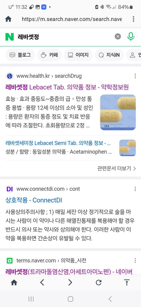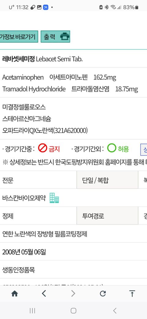 트라마돌과 아세트 아미노펜 성분의 진통제를 두알 드신것으로 확인됩니다.