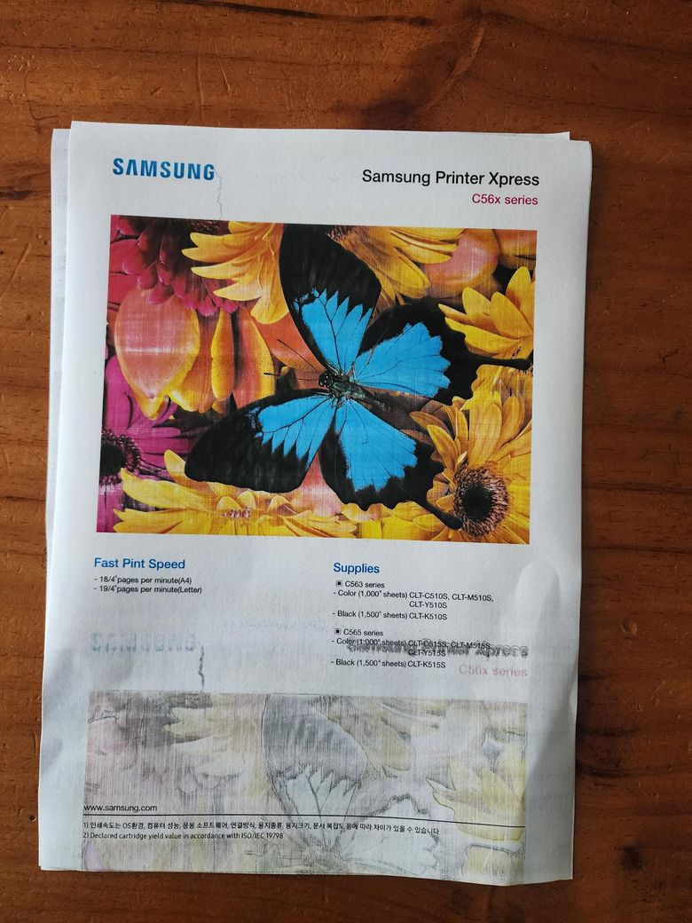 SL-C565W 복합기 인쇄시 프런터가 불량이에요