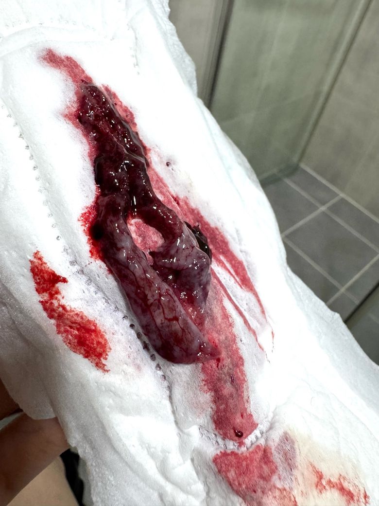 생리 첫 날 이상한 덩어리가 나왔습니다. 이게 뭔지알려주세요 ㅠㅠ