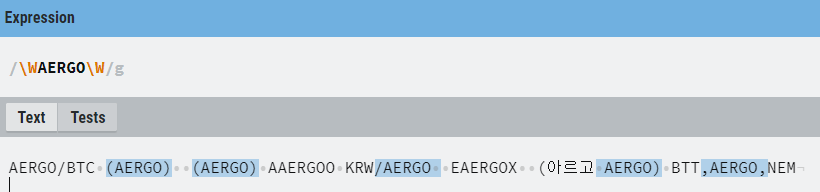 앞,뒤로 다른 Uppercase의 Word가 아닌 경우의 단어를 찾고싶습니다 ( AERGO 를 예로 들때.)
