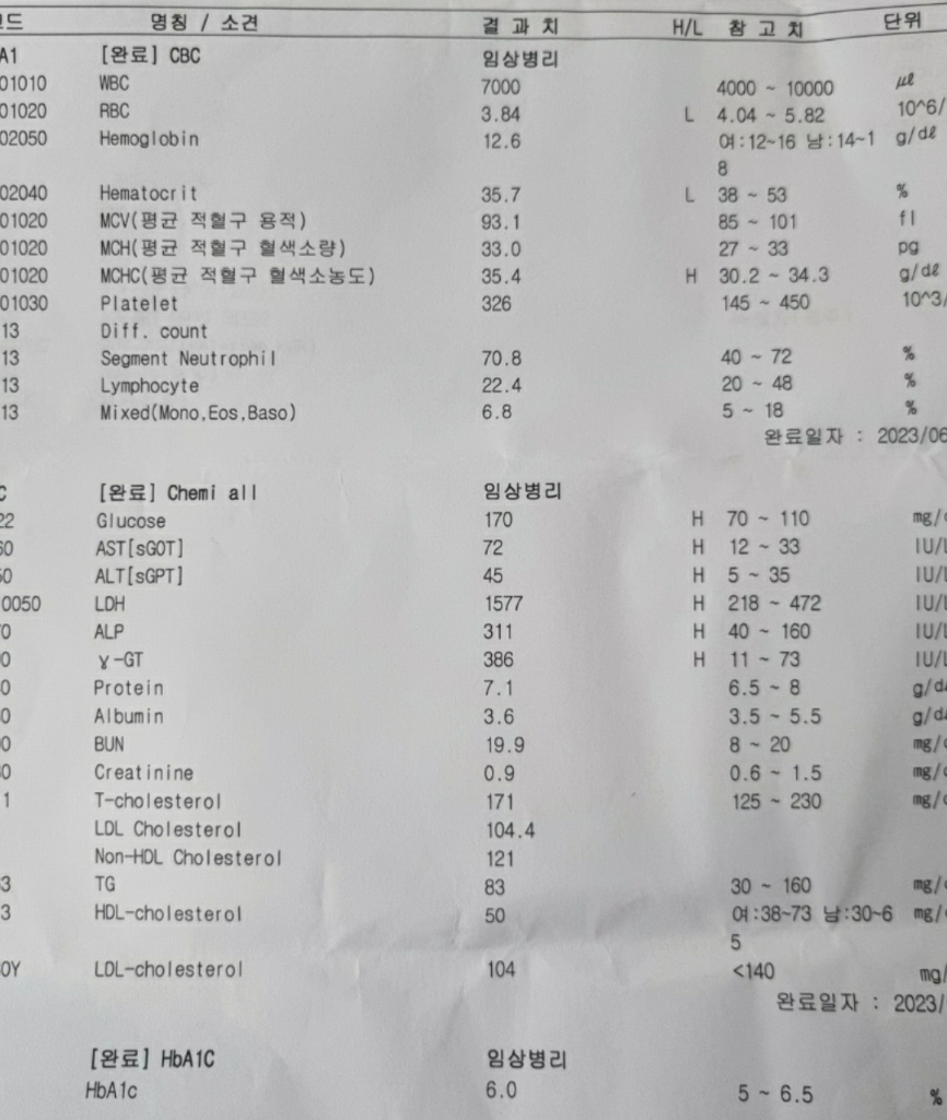 하지만 혈액검사로 간암을 평가할 수 없습니다. 영상검사가 가장 중요하며 혈액검사 중에는 종양 표지자라는 것을 보아야 하는데 올려주신 사진에는 결과값이 포함되어 있지 않습니다.