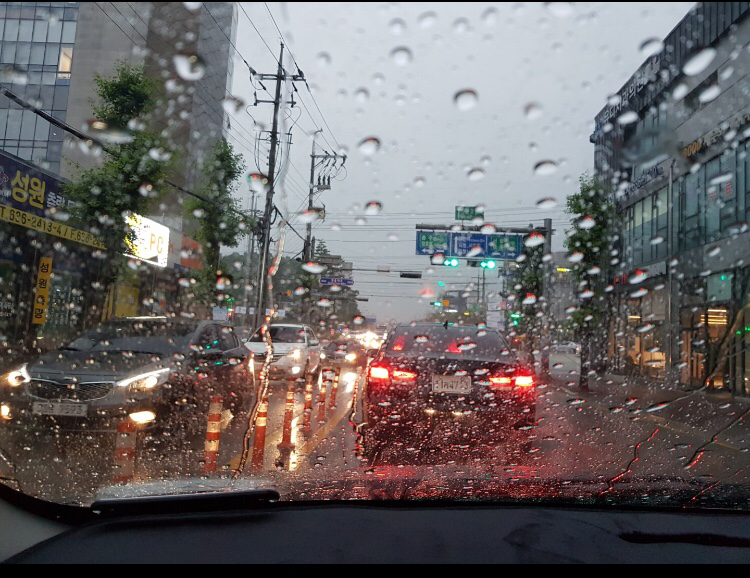 비오는 날은 물방울이 유리에 부딪혀 운전 시 시야가 가려지기 쉽습니다.