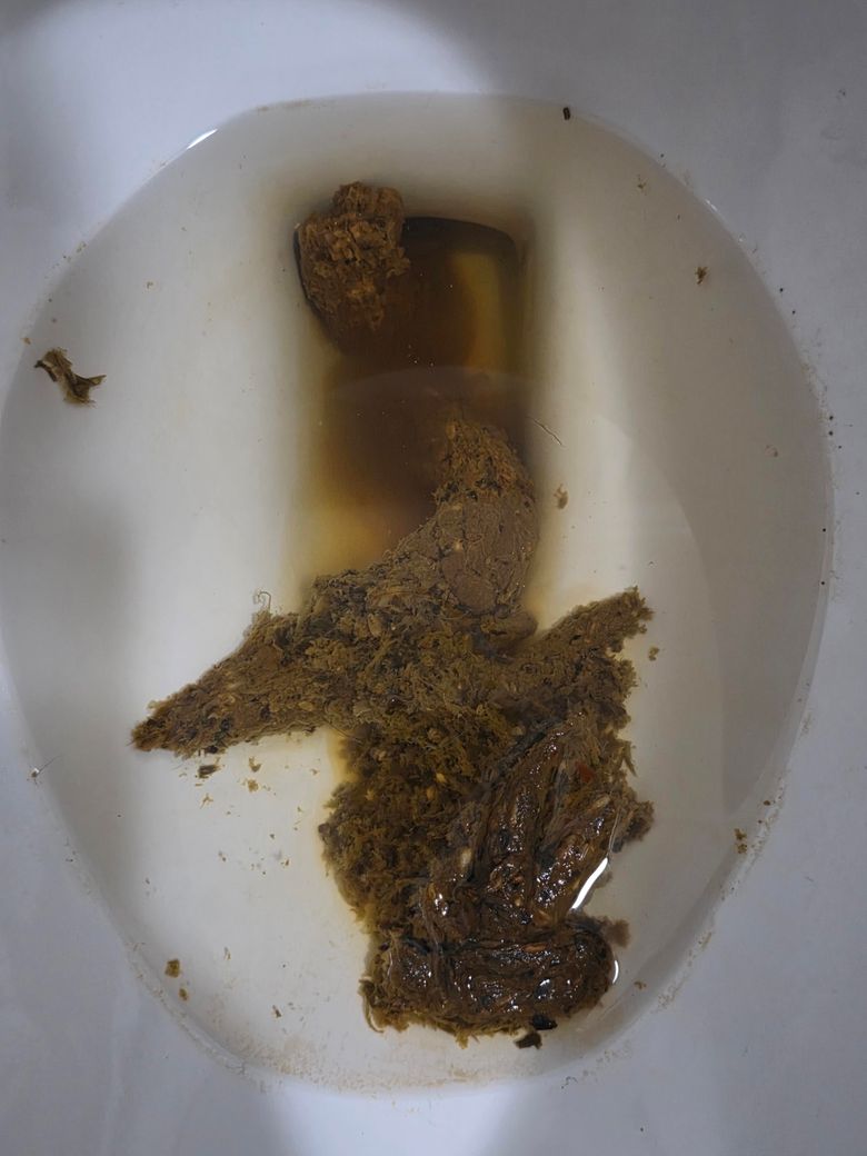 처음에 대변을 봤을때 정상적으로 보였었는데 시간이 조금지나 다시보니 대변이 풀리는것같은 부분인데 이점이 궁금해서 질문 남기며 사진첨부합니다.
