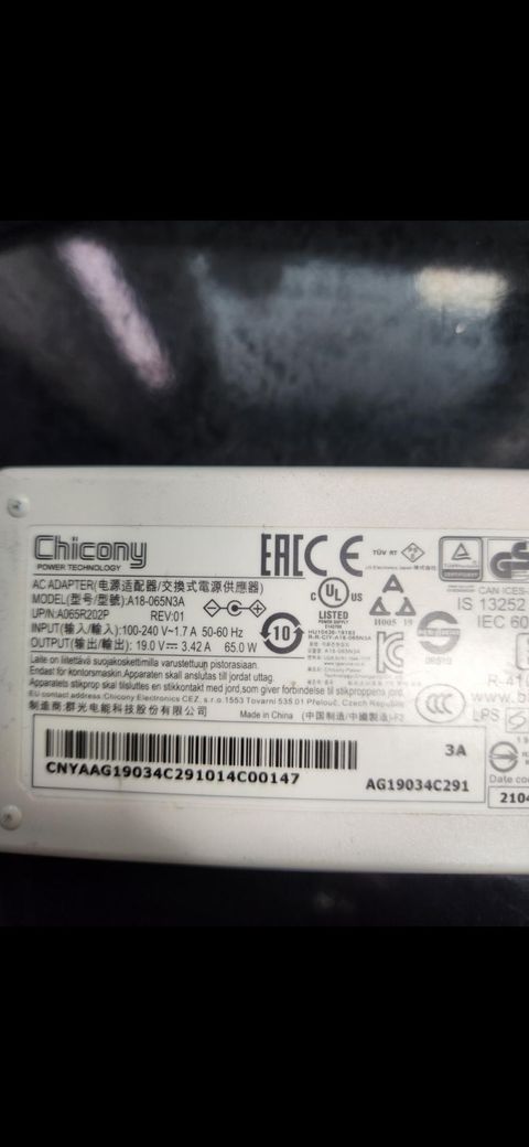 제 노트북 어댑터에 표기된 정보입니다. (사진1)