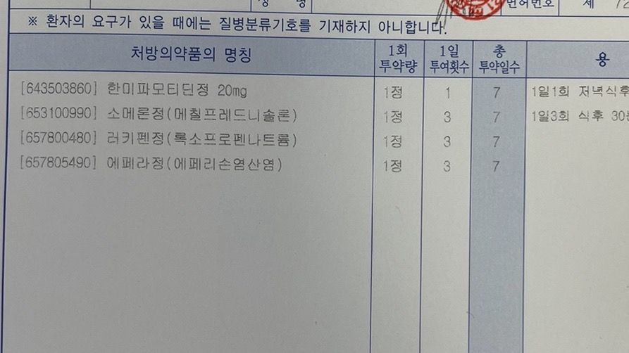 당분간은 약국 근이완제 +병원 처방약 이렇게