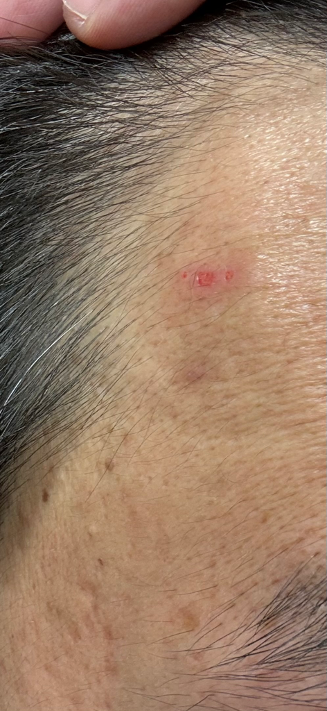 요즘들어서 따뜻한 물로 샤워하고 수건으로 여기저기 말리고 얼굴을 닦으면 사진과 같은 상처에서 피가 묻어나옵니다.(최근들어 같은 부위에 이런 일이 빈번했습니다)