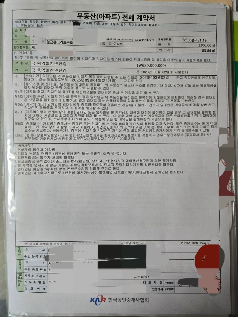 위 계약으로 만료일 도래하여 재연장 얘기도중 2024.11월 주택담보대출 5.8억 확인되었습니다