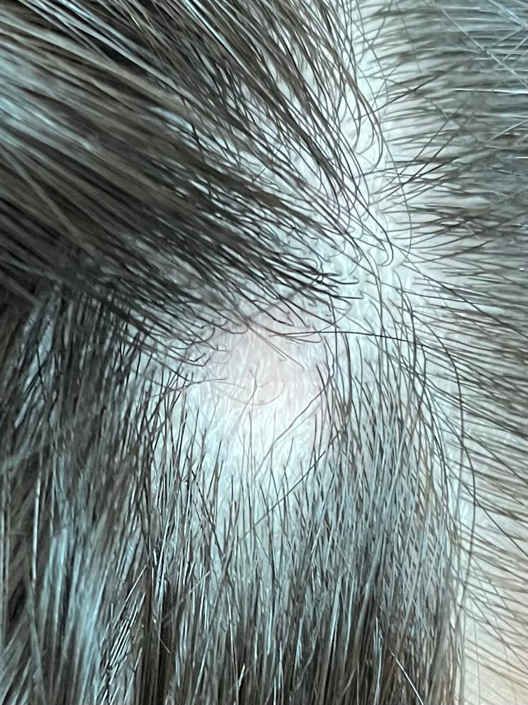 정수리 부위가 아니라면 원형틸모 증상일 가능성이 있습니다. 최근 스트레스가 많았다면 또한 가능성이있습니다. 근처피부과 진료 받아보세요