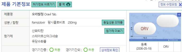 근데 사진에 있는 약 세 개 중 ORV(오라빌정) 하나만 대상포진 약이고