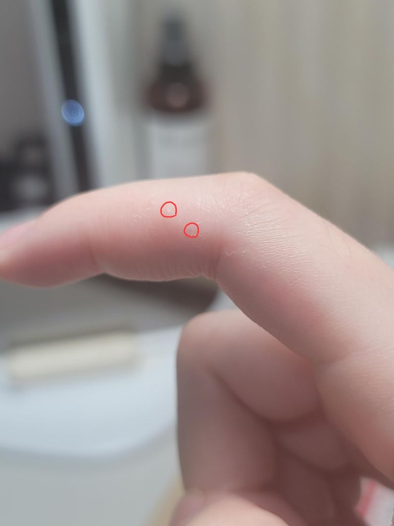 손가락에 물집인지 수포인지 두 종류가 생겼는데 하나는 위로 살짝 튀어나왔고 하나는 물이 찬거처럼 투명하게 생겼습니다 살짝 가려운데 핸드크림 바르면 좀 나을까요?