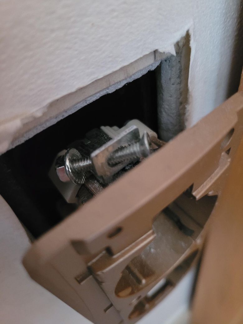 벽에 고정되어 있던 콘센트가 분리된 것으로 보입니다.